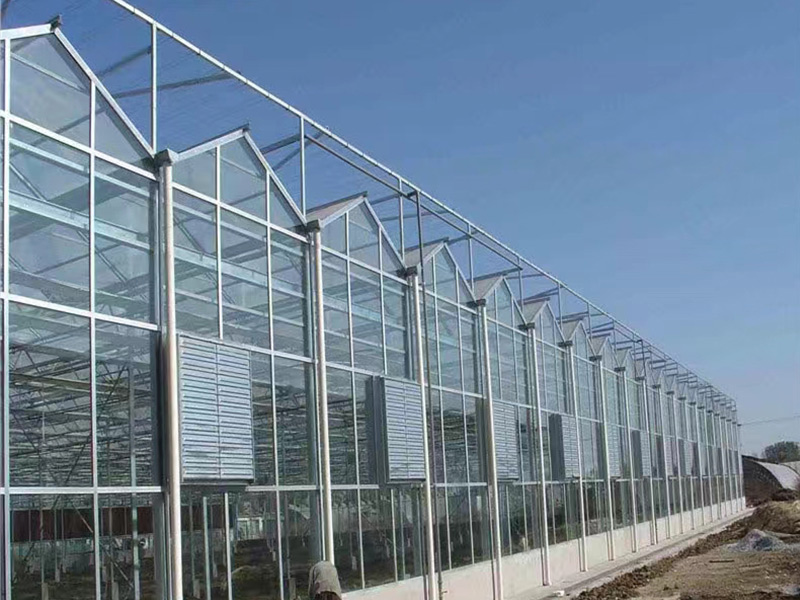 1、該類溫室采用熱鍍鋅鋼制骨架,覆蓋材料為國標5mm厚浮法玻璃,其透光率>90%。